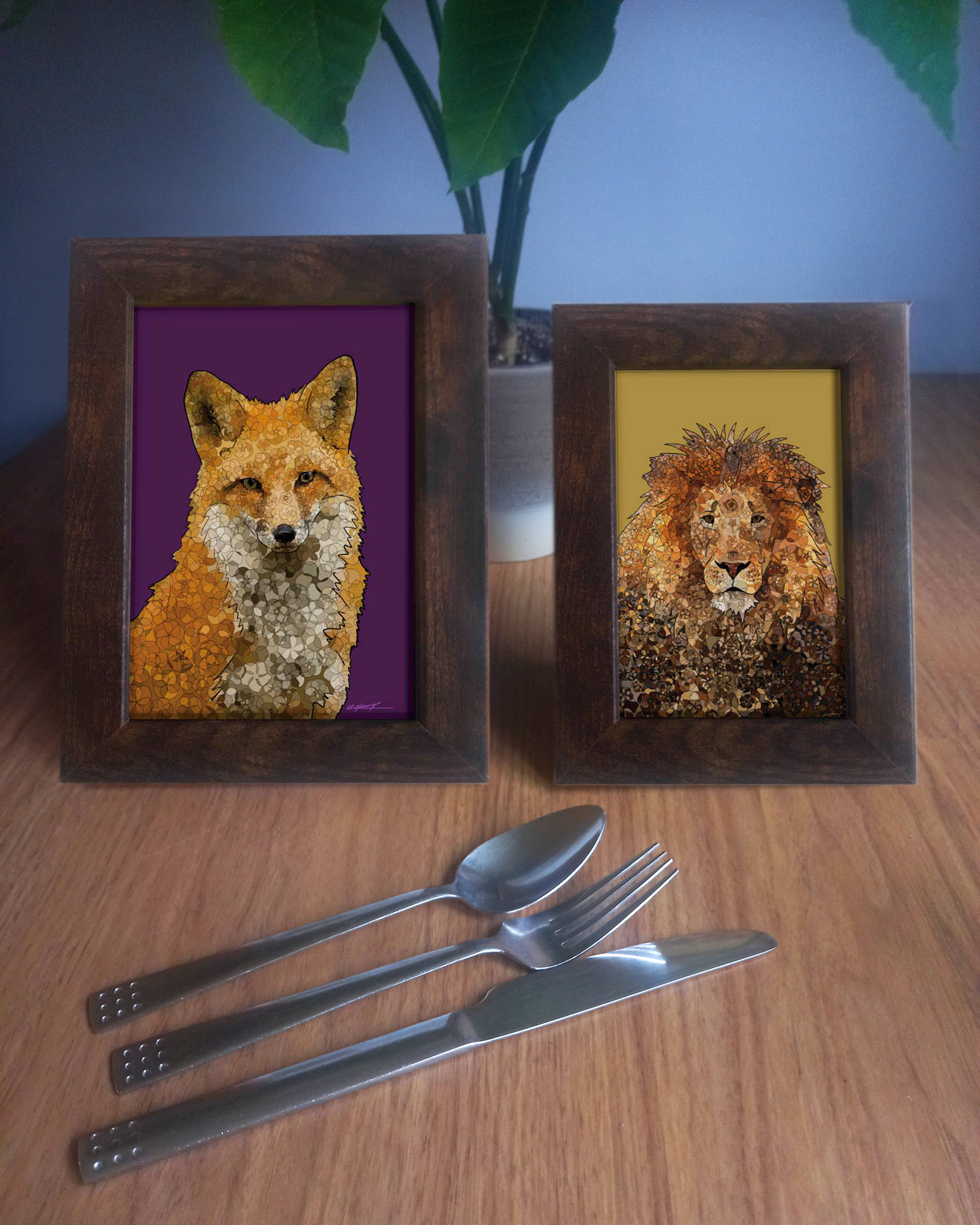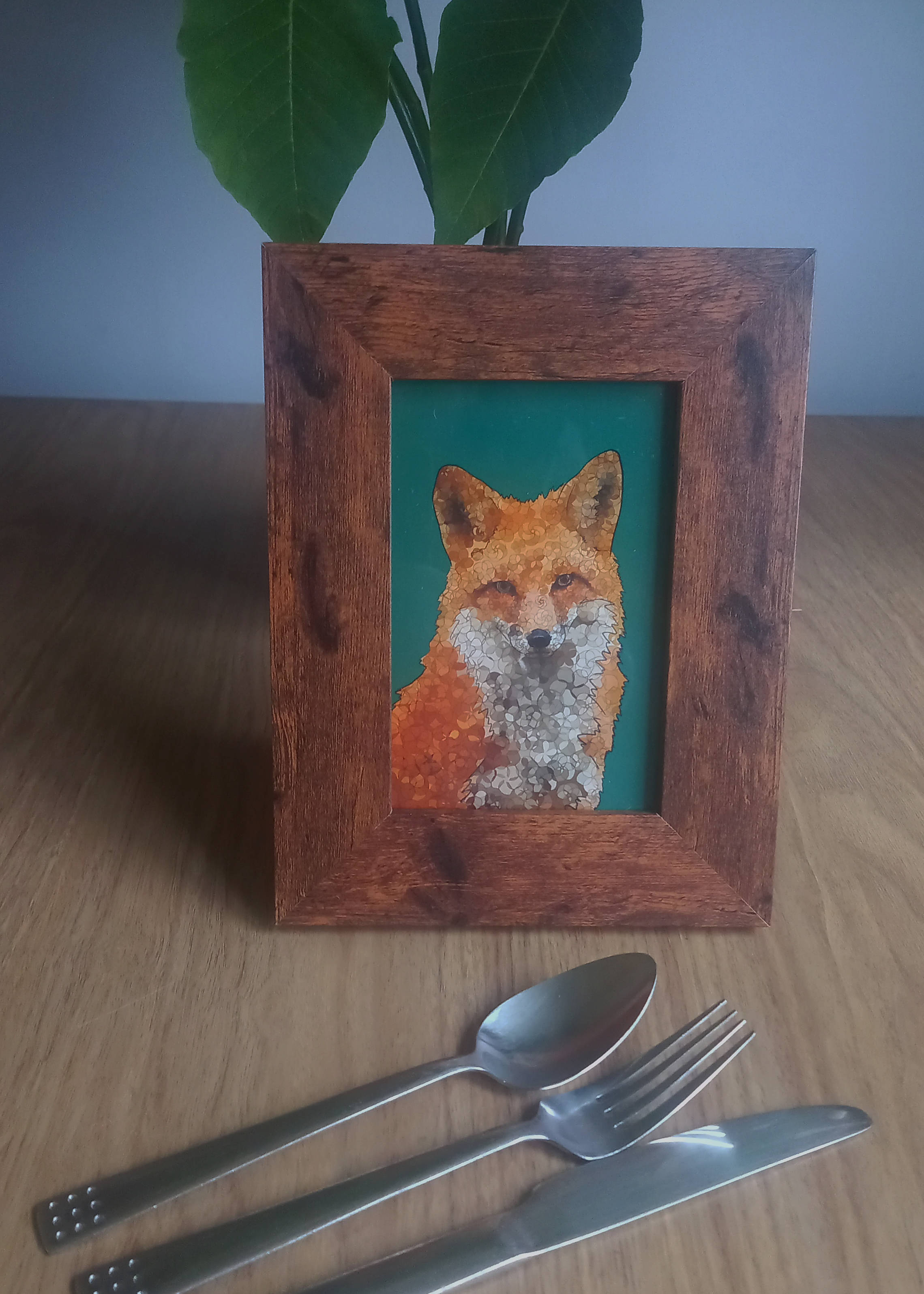 Here you can view the size relatioship of the 7x5 inch and 6x4 inch frames side by side, with cutlery for size reference! It's often hard to see how big things are online!
