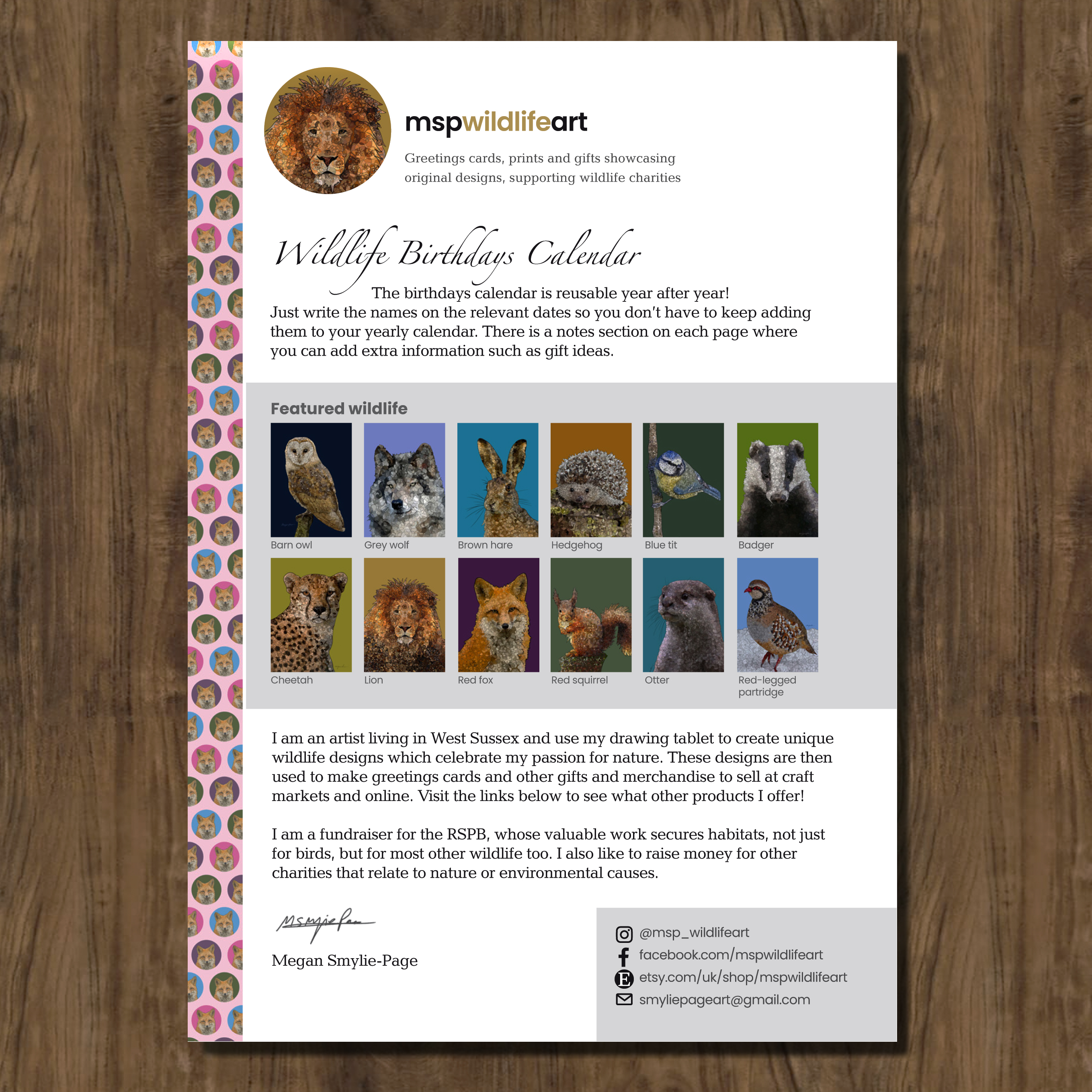 Get organised with our beautiful and unique birthdays wall calendar. Designed only to show days of the month, this calendar can be used year after year as a reminder of birthdays and other anniversaries. Limited stocks available so treat yourself or friends and family with this great Christmas gift idea. Size: 7x5" Printed on silk paper with a glossy cover. Comes with a mini paper clip for hanging.