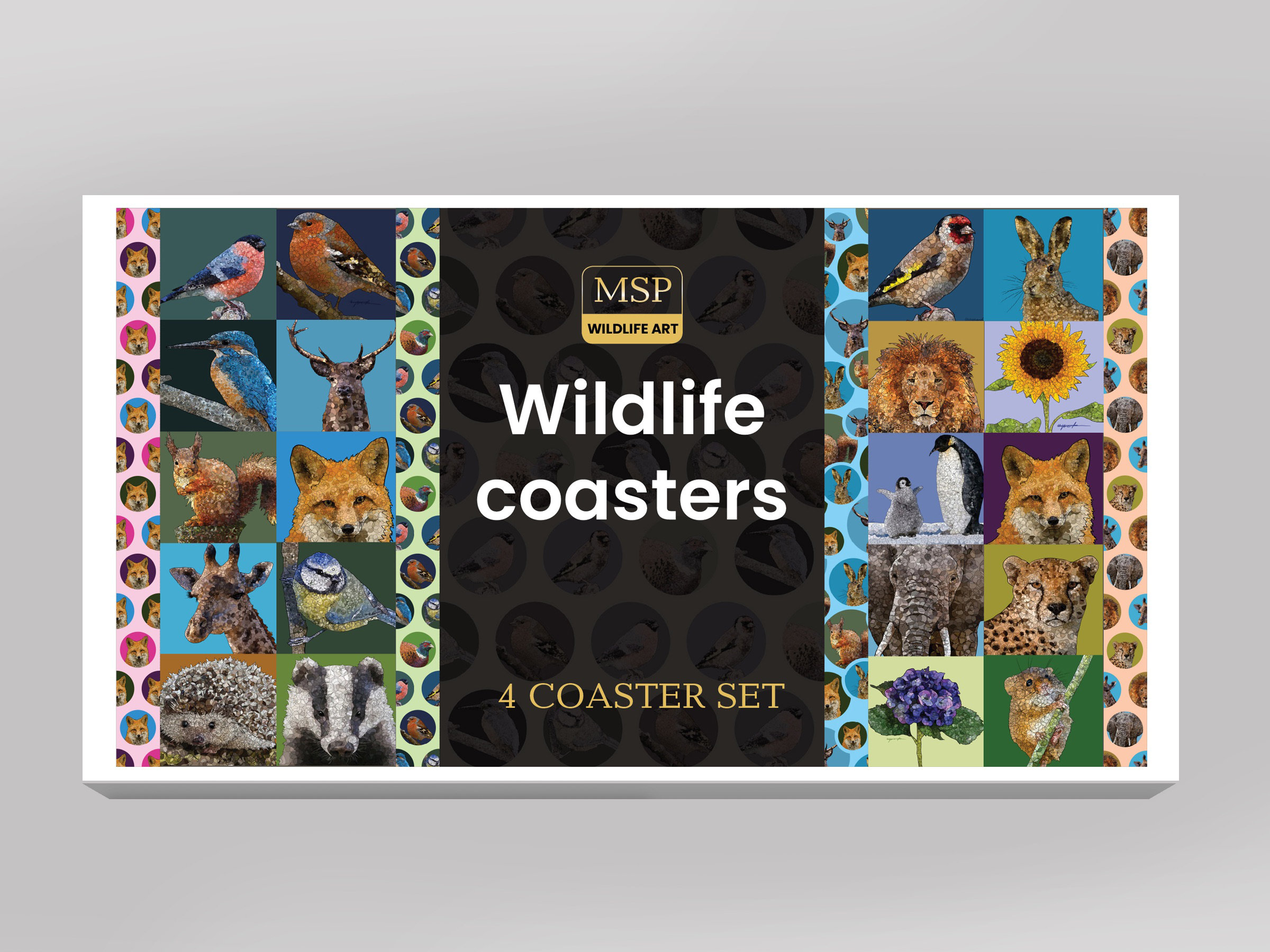 Mix and match any four coasters and get a free presentation box. My unique animal print coasters feature a beautiful glossy coloured design with a wipeable finish and an anti-slip cork base. All my designs are available as single coasters or 'mix and match' sets of four.