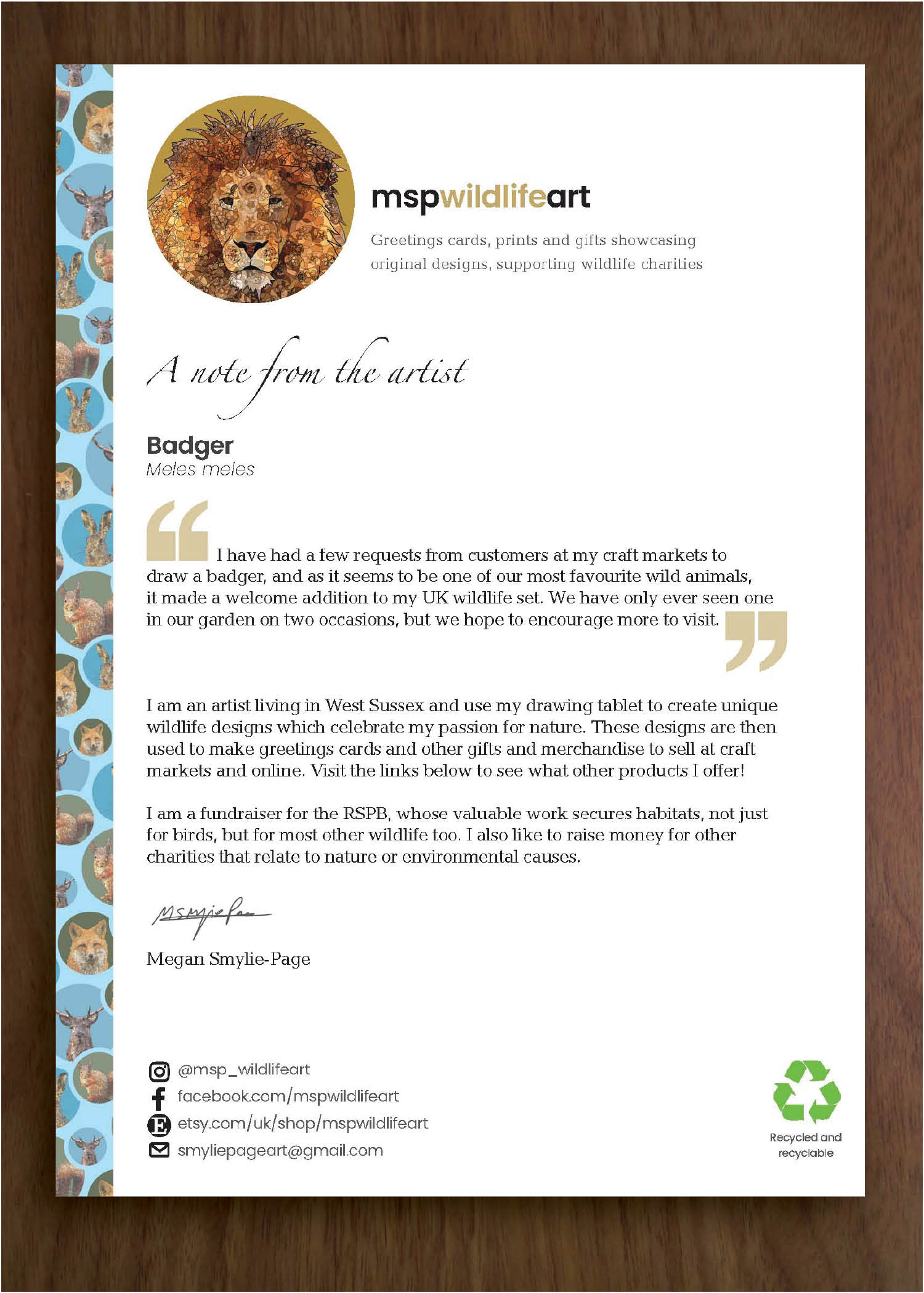 Treat your friends and family on their special day with my unique wildlife design greetings cards. £2.50 each.