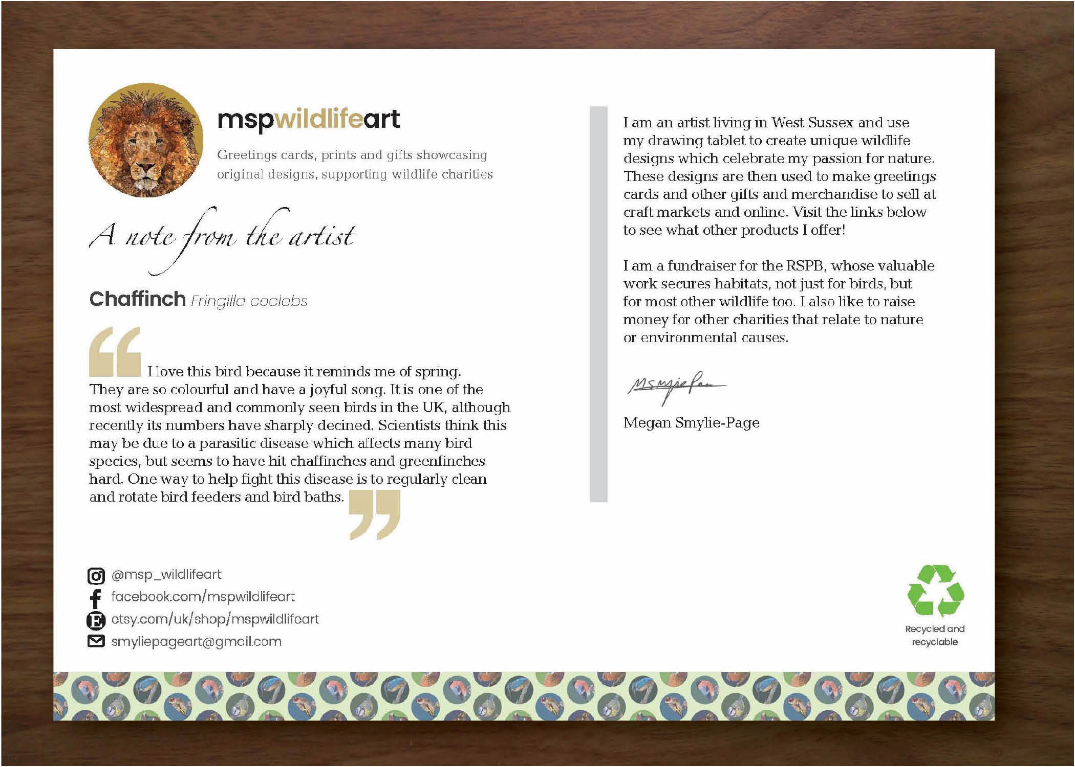 Treat your friends and family on their special day with my unique wildlife design greetings cards. £2.50 each.