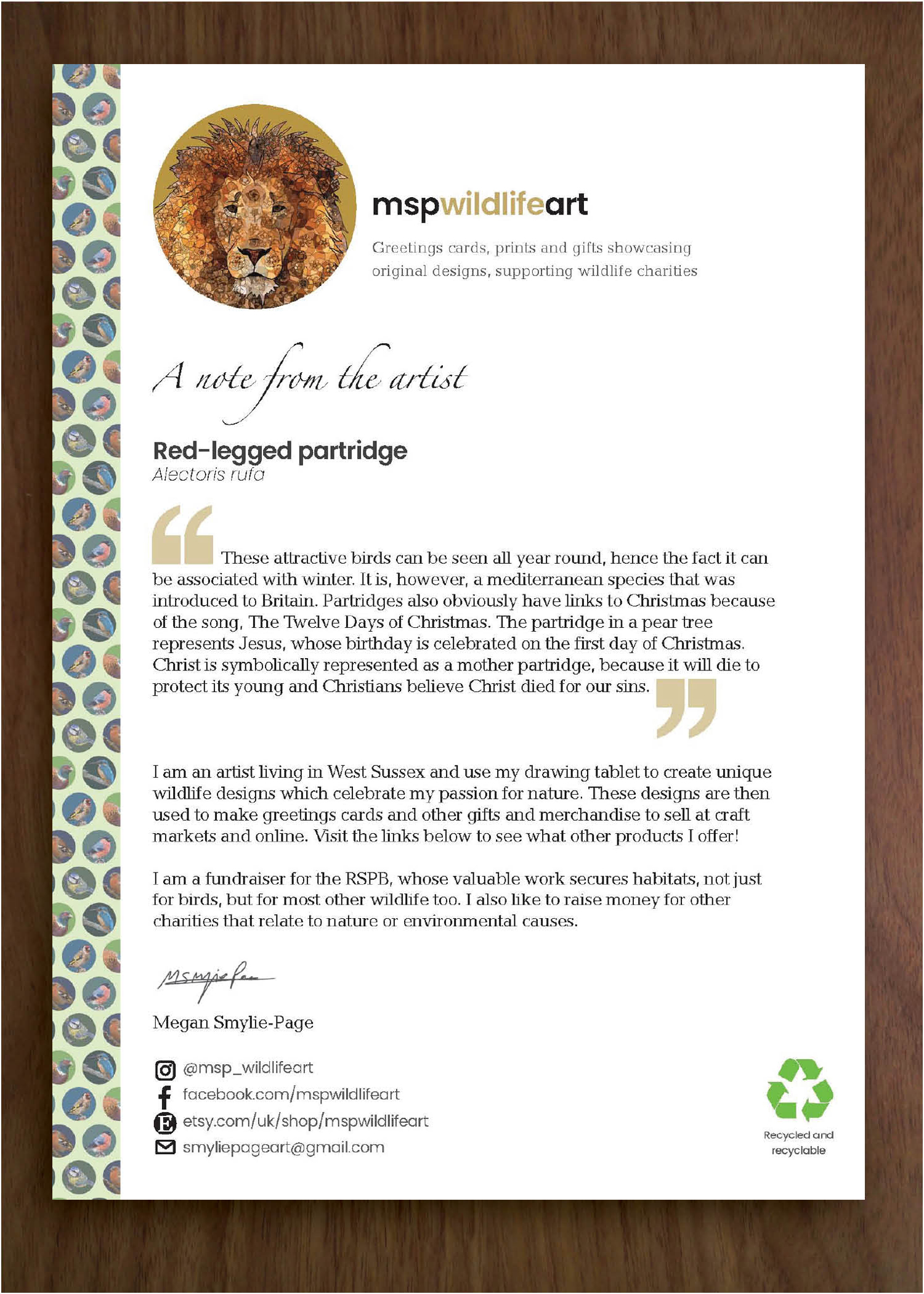 Treat your friends and family on their special day with my unique wildlife design greetings cards. £2.50 each.