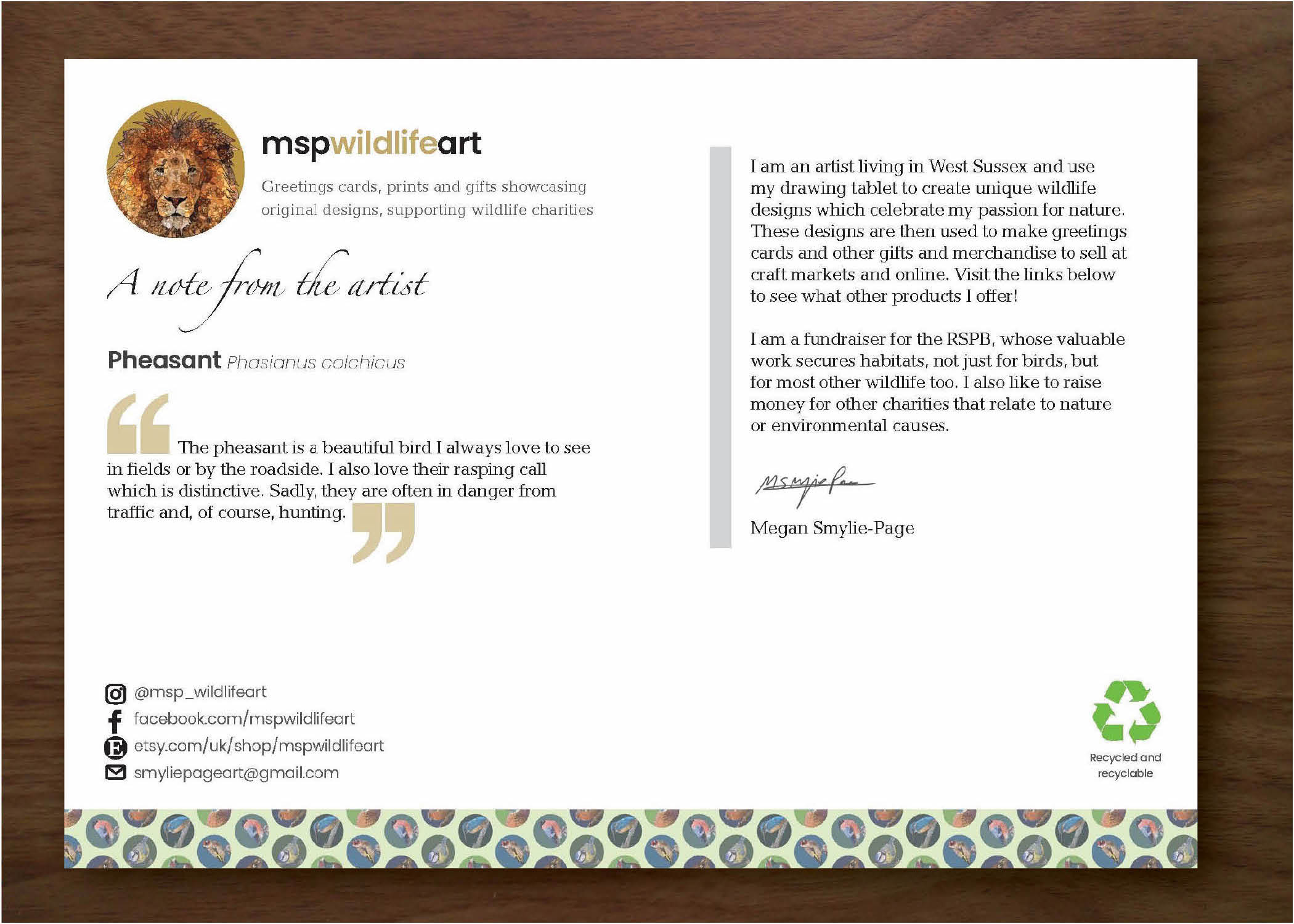 Treat your friends and family on their special day with my unique wildlife design greetings cards. £2.50 each.