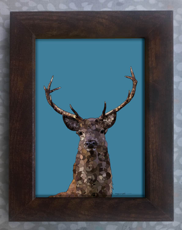 Red deer stag framed print 7x5