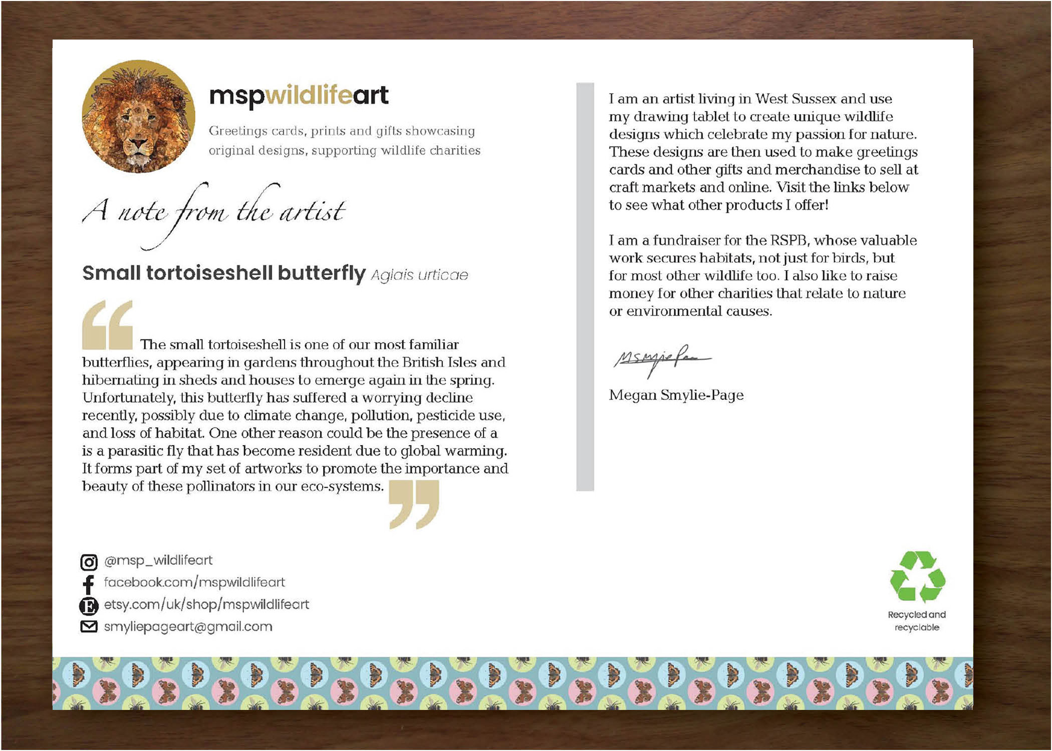 Treat your friends and family on their special day with my unique wildlife design greetings cards. £2.50 each.